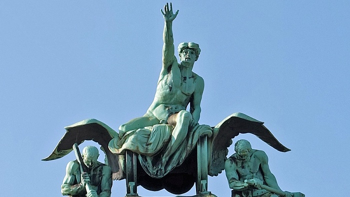 Figurengruppe auf dem alten Bahnhofsportal.
