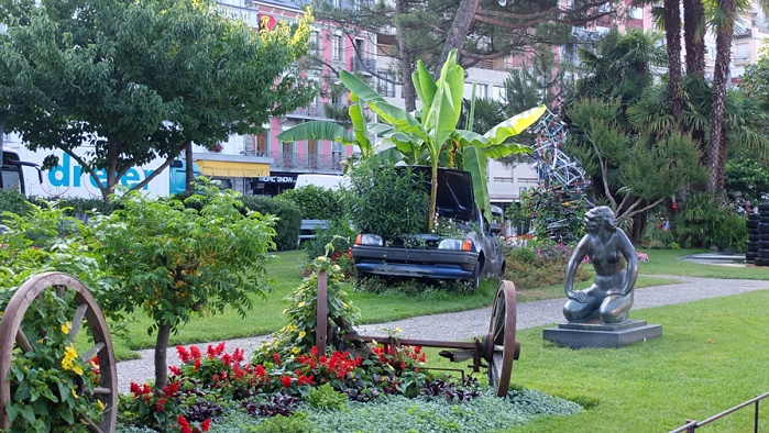auch exotische Pflanzen und der Blick auf den See und die gegenüberliegenden