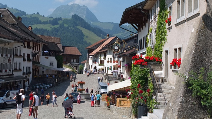 810 Meter liegende historische Städtchen Gruyères, ….