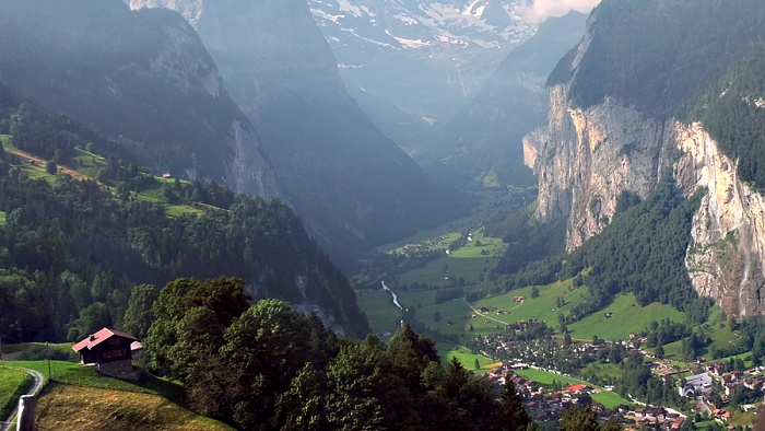 Interlaken in das auf 796 m liegende Lauterbrunnen, welches im gleichnamigen