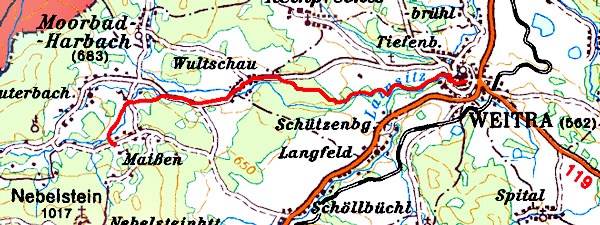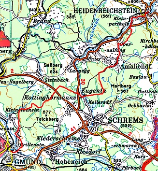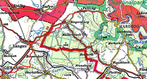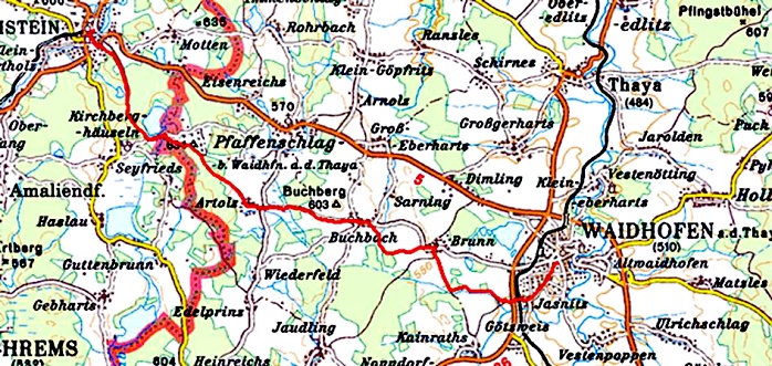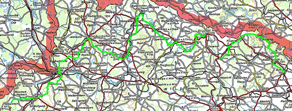 Seehöhe von ca. 450 Metern führte der Weg von Geras durch dichten, ….