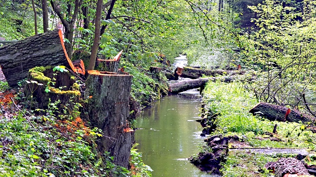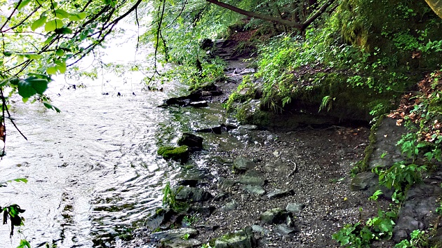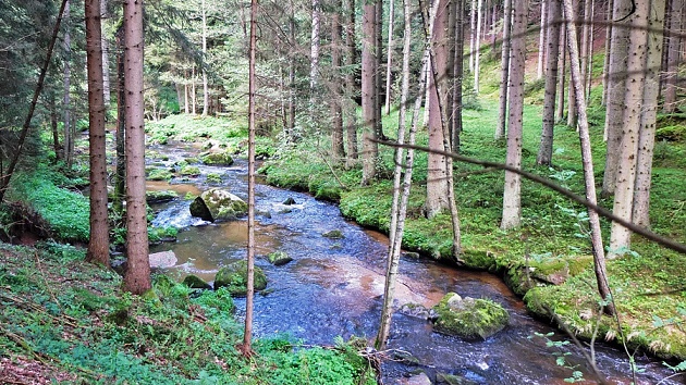 durch dichten Wald, bis wir wieder ans Ufer des Wultschaubaches