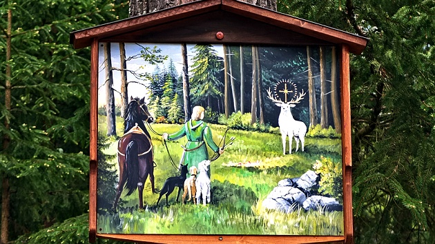 Kunstwerke zu sehen gab und zwar einen Bildstock mit dem weißen Hirsch, der