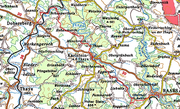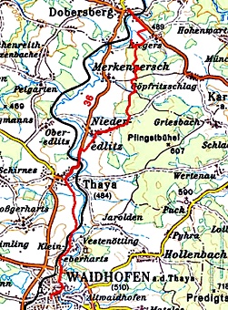 letztes Mal hinunter zur Thaya und entlang des Flusses bis zur Mündung des Kajabaches.