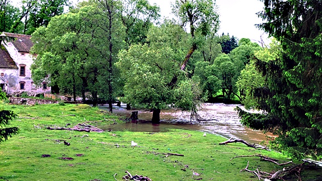 Thayatalweg am Ortsende von Hardegg wegen Hochwasser gesperrt, am Morgen der