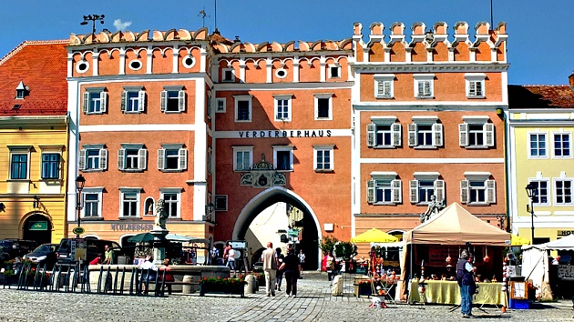 schön ist der Rathausplatz mit seinen alten Bürgerhäusern. Bemerkenswert ist