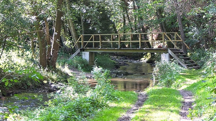 überqueren wir auf einer alten Steinbrücke den Buschenbach.