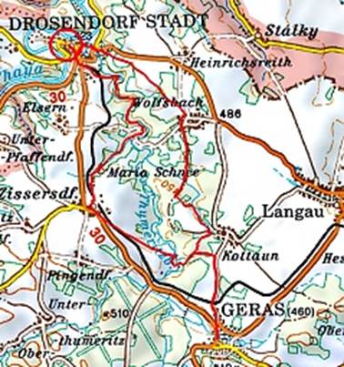 später erreiche ich wieder den Ausgangspunkt dieser Rundwanderung, Geras.