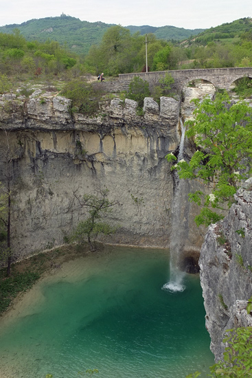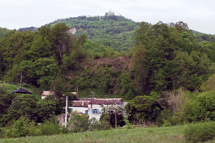 und Wälder und überquerten mehrmals den Flusslauf der Mirna. Unterhalb des kleinen Dorfes Podkuk kamen wir an einen kleinen
