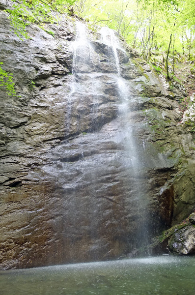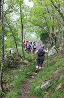 eines Baches den Berg hinauf, bei einem Wasserfall machten wir eine kurze