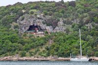 eine große Höhle, darunter ein Landeplatz, von dem wir den Ausflug mit einer