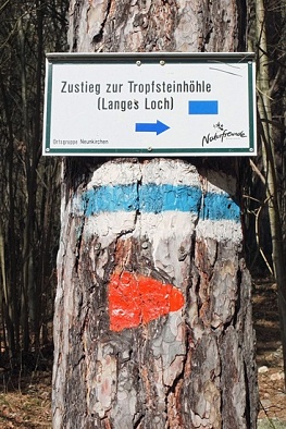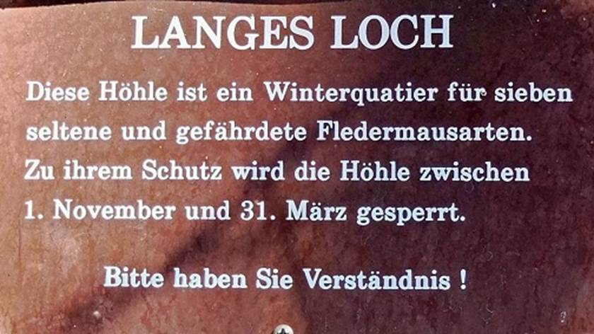 Wegweiser den kleinen Umweg zum „Langen Loch“ anzeigt.