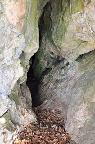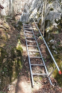 kurze Leiter komme ich zum Höhleneingang, der in den Wintermonaten versperrt