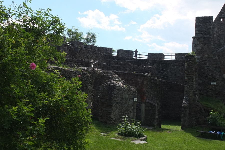 Inneren Burghof, der von einer nur noch teilweise erhaltenen Ringmauer umgeben