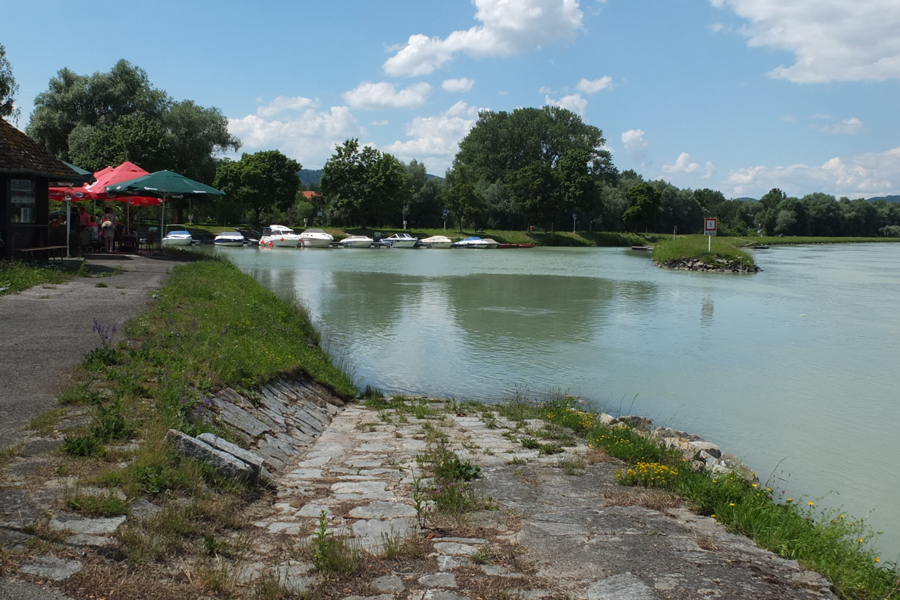 Danach führte uns der Donausteig wieder ans Ufer der Aschach, an dem wir weiter flussabwärts zur Donau gingen, die wir bei Brandstatt erreichten.