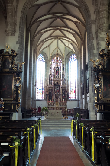 die oben erwähnten Schaunberger die Besitzer der Stadt. Beeindruckend ist die mächtige Eferdinger Stadtpfarrkirche,
