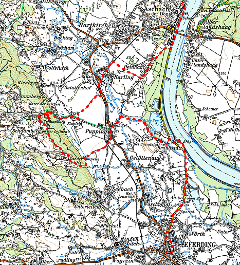 ... danach weg von der Donau nach Deinham und Karling, wo wir die Aschach überquerten.
