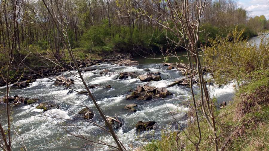 In der Nähe von Grunddorf macht der Flusslauf einen 90-Grad-Knick