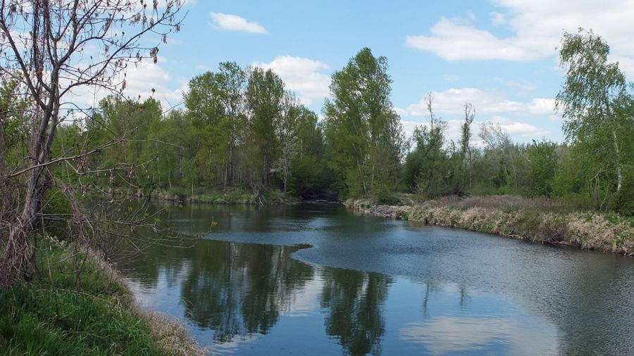 Das daran anschließende Augebiet ist weitgehend natur belassen und ist Heimat für zahlreiche Wildtiere – vor allem Biber und Störche fühlen sich wohl.
