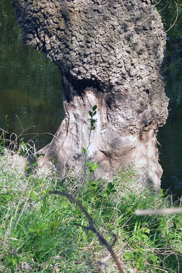 nach Norden, unterquert die Schnellstrasse und verlässt das Augebiet. Nur noch das Ufer des Kamps ist bewaldet und auch hier beweisen die angenagten und zumeist auch gefällten Bäume die Anwesenheit von Bibern – zu Gesicht bekomme ich diese scheuen Tiere bei der Wanderung aber nicht.