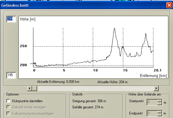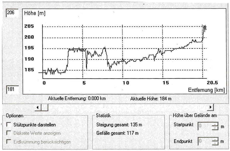Gesamtsteigung 156 m / Gesamtgefälle 117 m