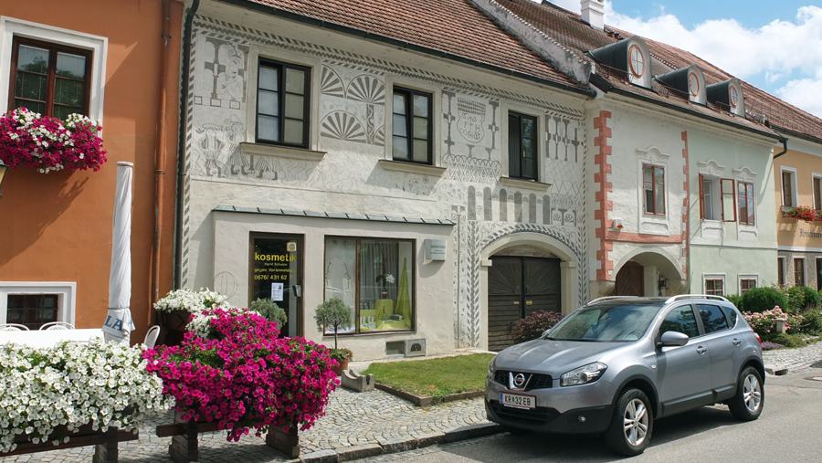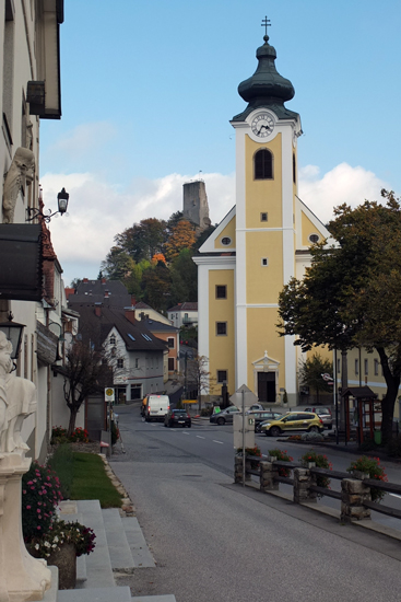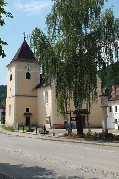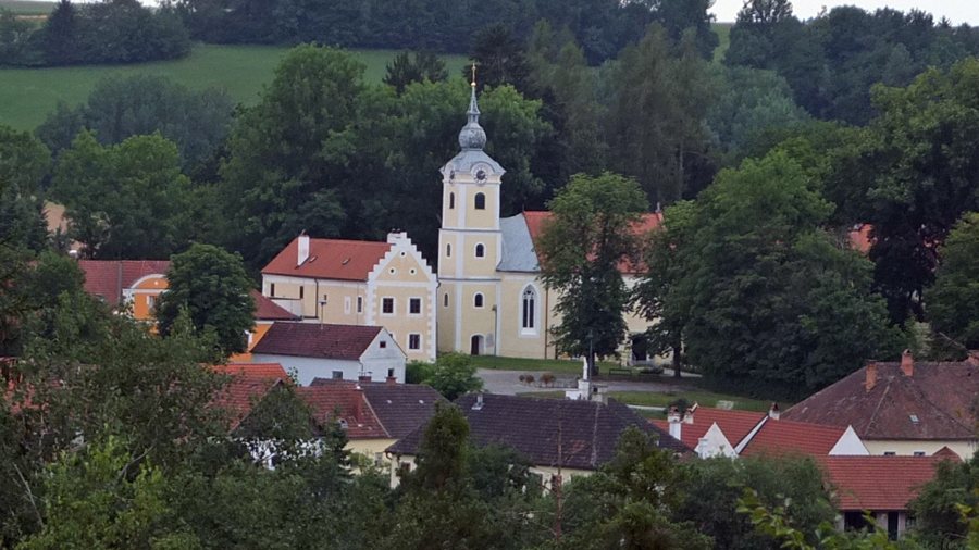 Danach besuche ich die Pfarrkirche, eine spätbarocke, in ihrem Kern aber romanische und gotische Saalkirche, neben der ein Karner aus dem 13. Jahrhundert steht.