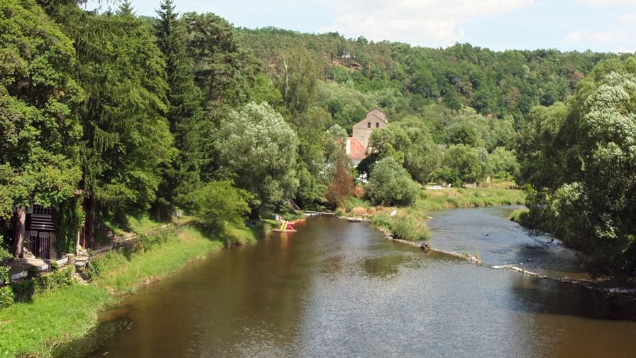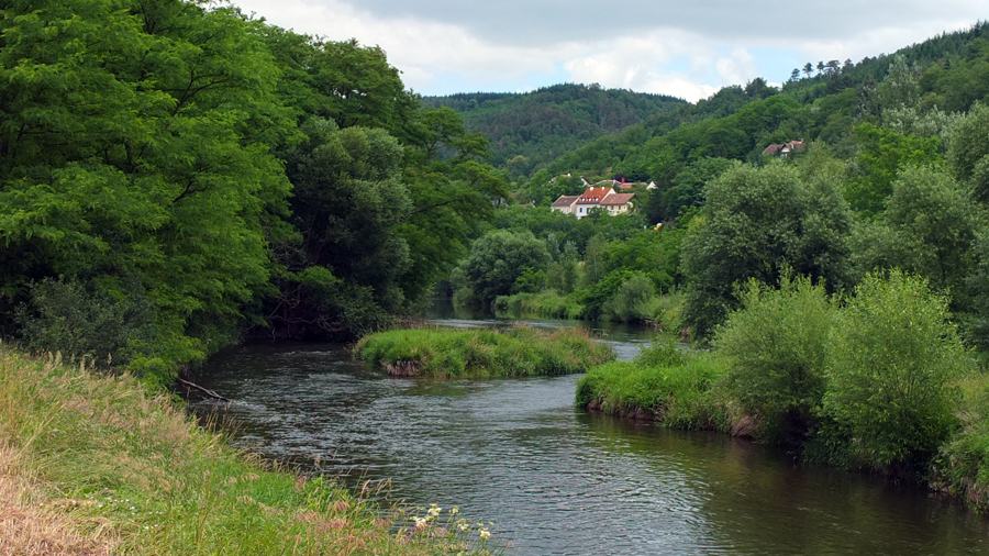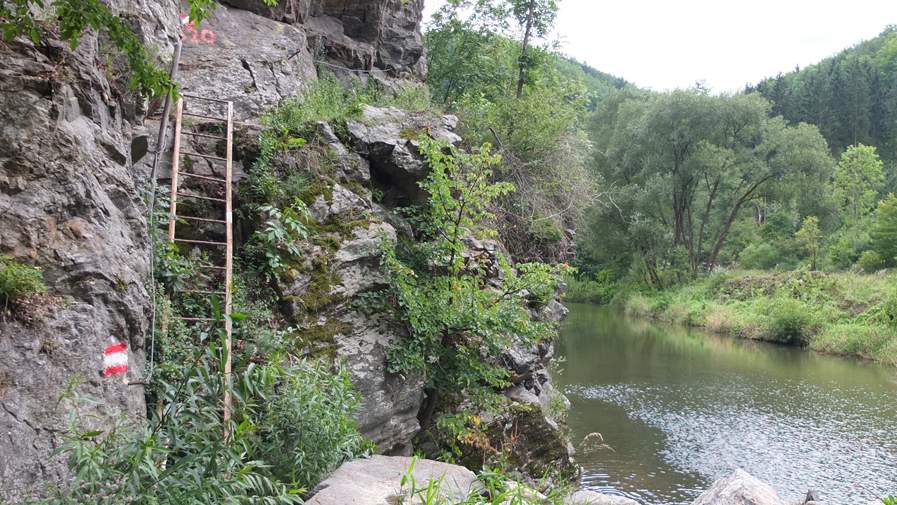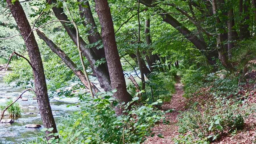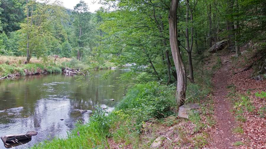 Vorbei an der Bruckmühle führt unser Weg entlang des Ufers durch das „Paradies“....