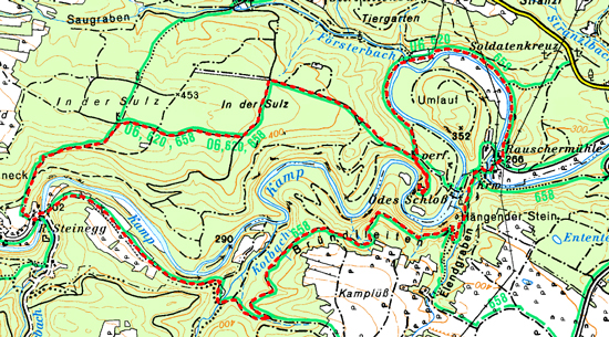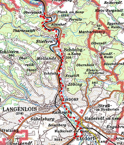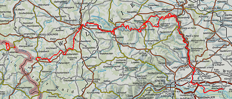 Waldviertel mäanderartig in zahlreichen engen Schlingen und Bögen. Im Mittelabschnitt des Kamps gibt es 3 Stauseen (Ottensteiner