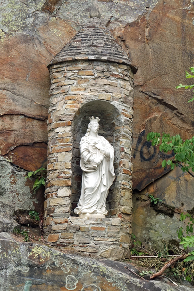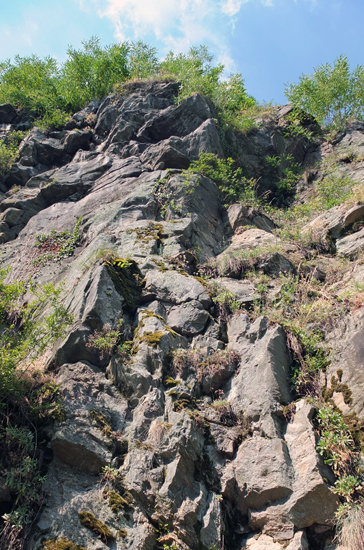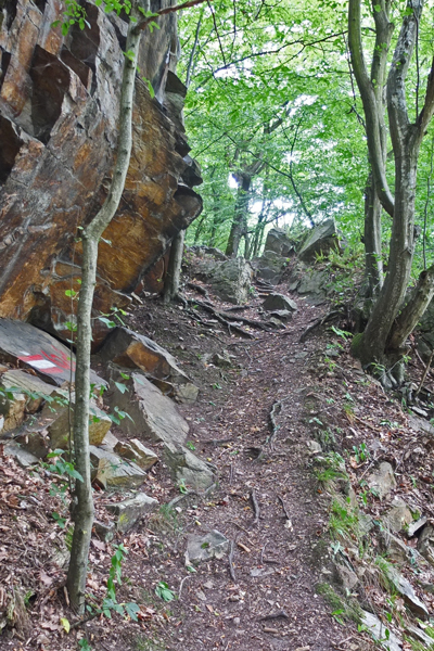 Markierungen angebracht sind, wird daraus ein Gesicht, das den Wanderern