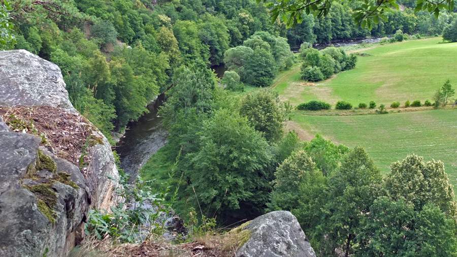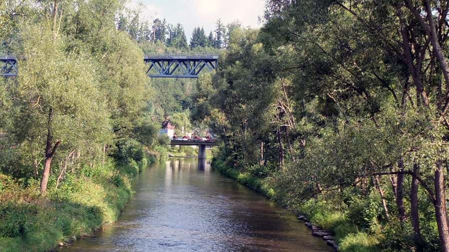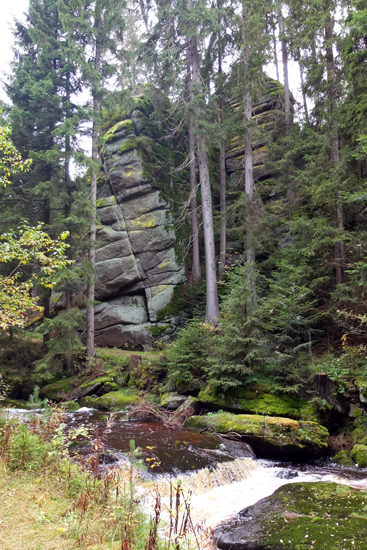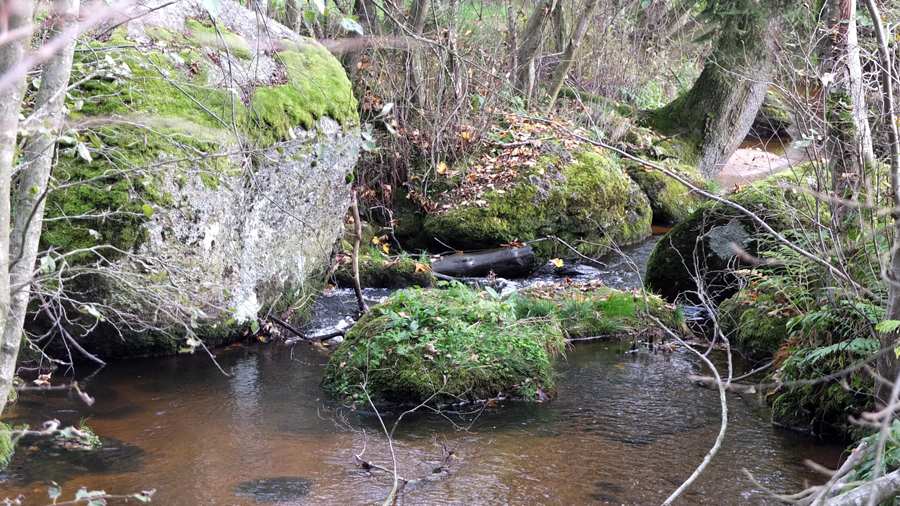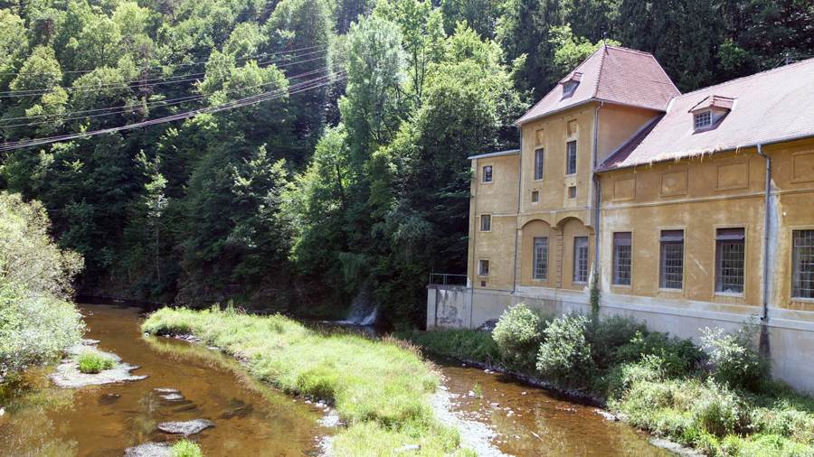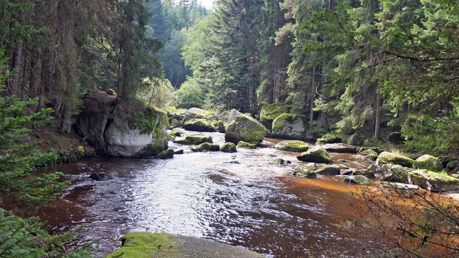 Gewundenes Flussbett oberhalb des Höllfalls .... und zur ehemaligen „Hammermühle“ kommen.
