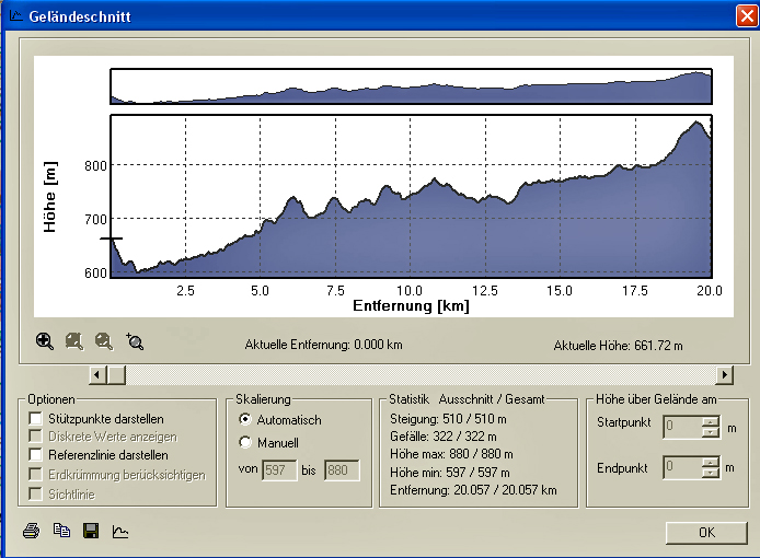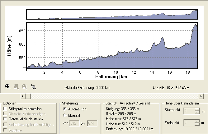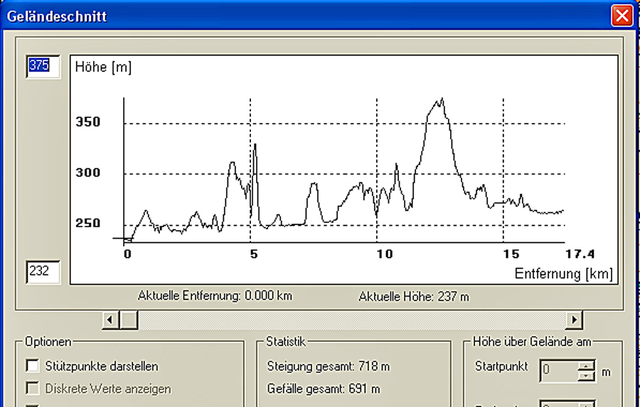 Gesamtsteigung 510 m Gesamtgefälle 322 m