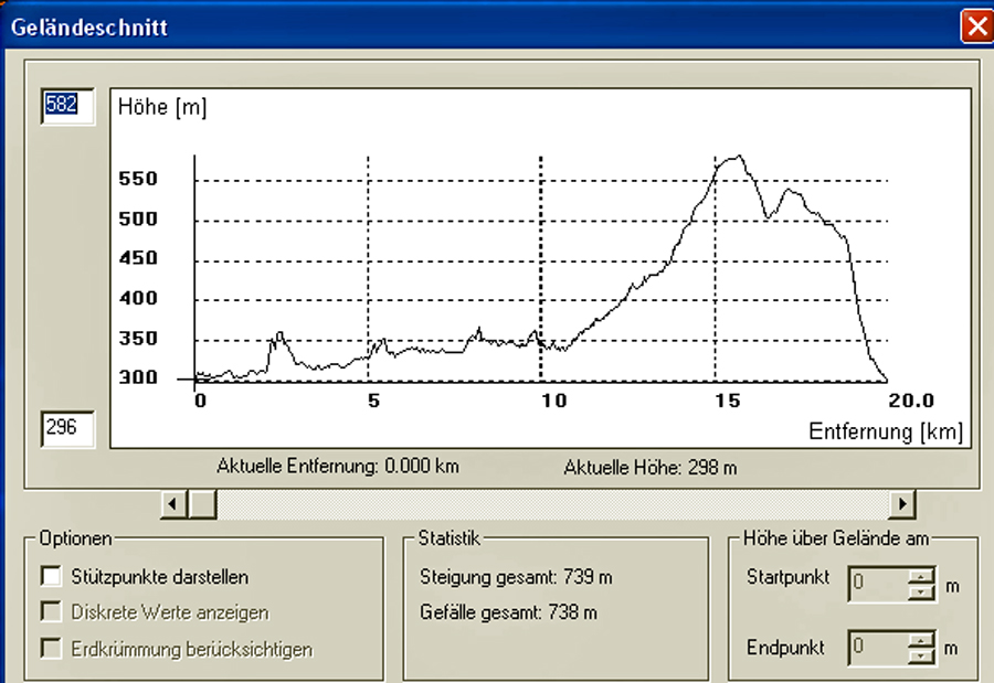 Gesamtsteigung 5.421 m / Gesamtgefälle 4.985 m