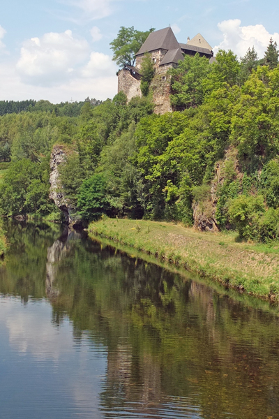 Kamps. In Rappottenstein beginnt unsere Wanderung und wir gehen zunächst hinunter ans Ufer des Großen Kamps, wo wir über einen Steg auf die andere Seite des Flusses kommen und flussaufwärts weitergehen.