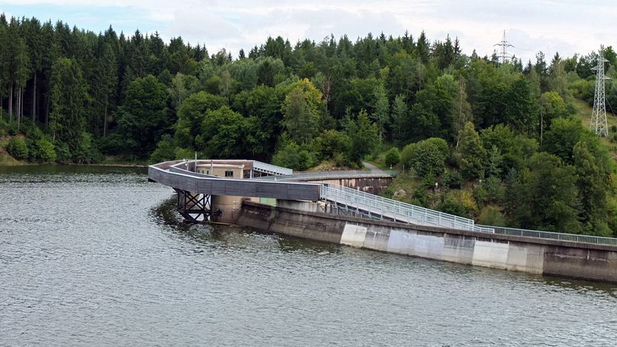 Staubecken und von diesem durch einen bis zu 20 Meter hohen Damm getrennt,