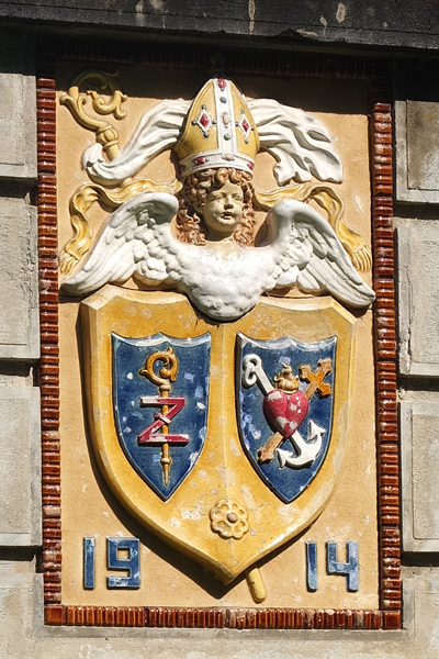 Über dem Eingang des Rathauses prangt das Wappen des Ortes.