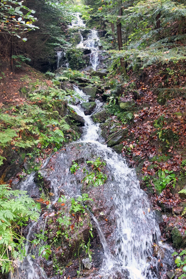 landschaftlichen Höhepunkt der heutigen Etappe, dem „Höllfall“ kommen. Ein leicht ansteigender, breiter Waldweg bringt uns