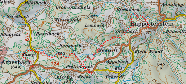 markiert und auch unwegsam ist, fuhren wir zunächst von Arbesbach weiter