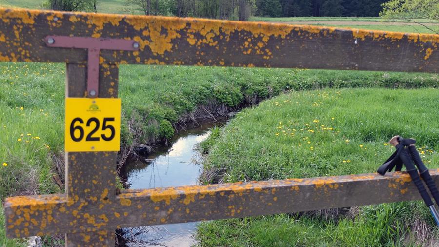 Schließlich erreichen wir das stillgelegte Sägewerk Königsmühle, wo die heutige Etappe bei leichtem Regen bei der Brücke über die Große