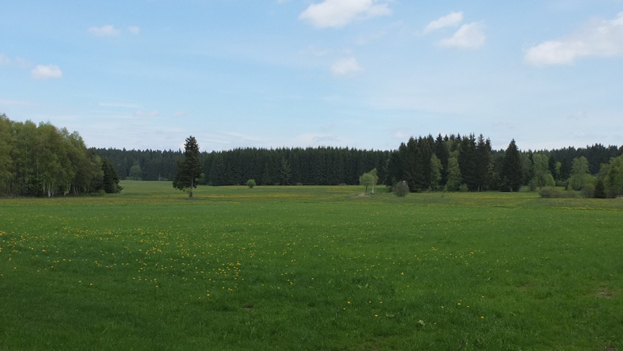Wieder folgt eine lange Waldpassage, vorbei am Roten Kreuz und immer in nördlicher Richtung.