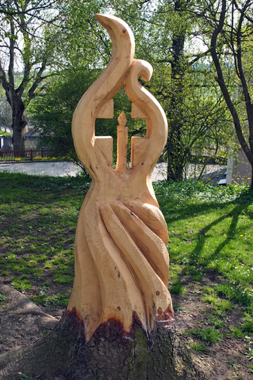 einem noch im Erdreich verwurzelten Baumstamm herausgearbeitet wurde.