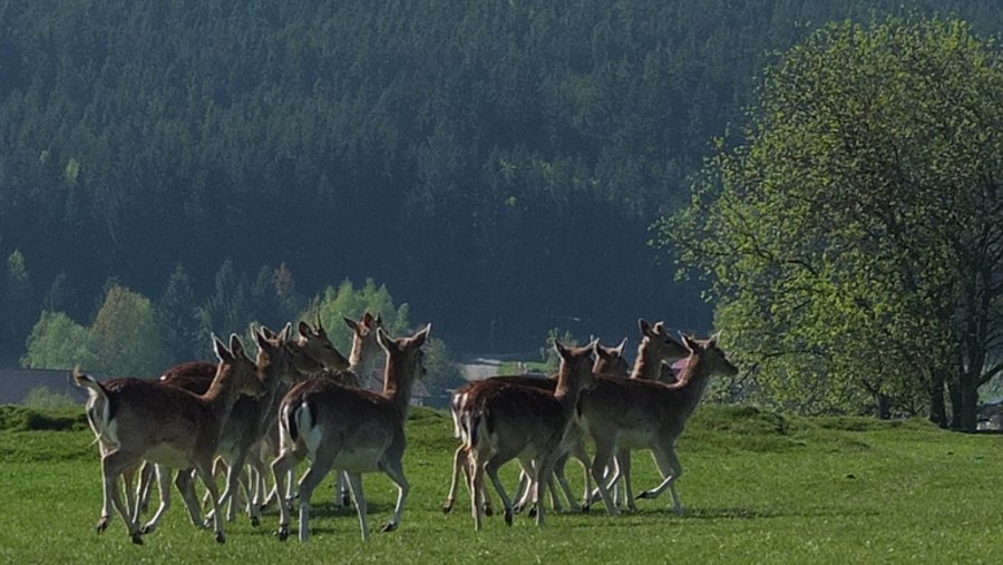Die zweite Etappe beginnt in Martinsberg und wir verlassen den Ort in westlicher Richtung, passieren den Weiler Oed, wandern an der Waldviertler Sternwarte „Orion“ vorbei und kommen kurz vor Edlesberg zu einem großen Wildgehege.
