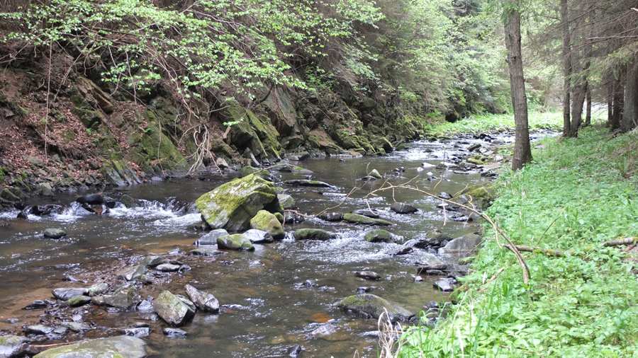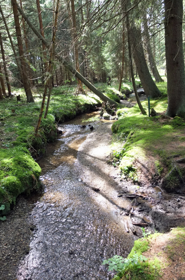 Großen Krems kommen. Hier ist die Große Krems aber noch ein schmales Rinnsal ( das in ca. 950 m Seehöhe im dichten Waldgebiet westlich der Vorderen Waldhäuser entspringt.