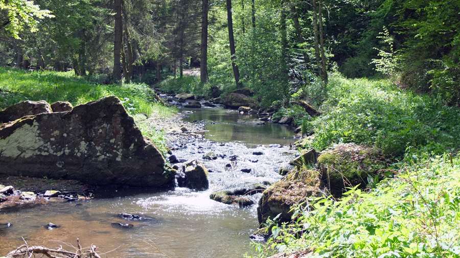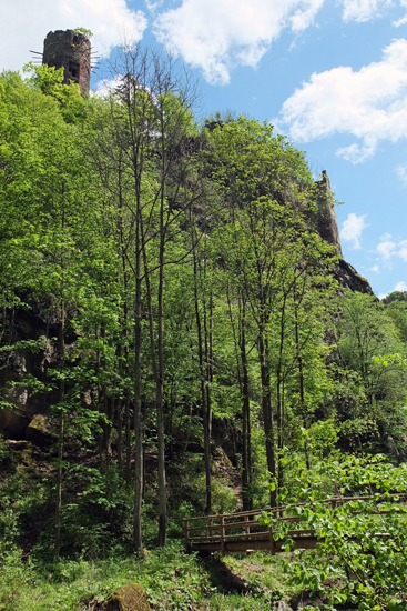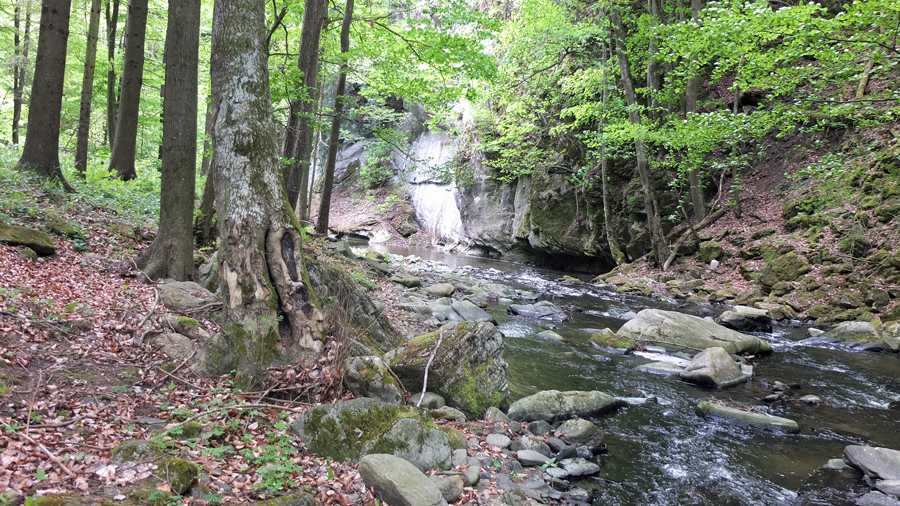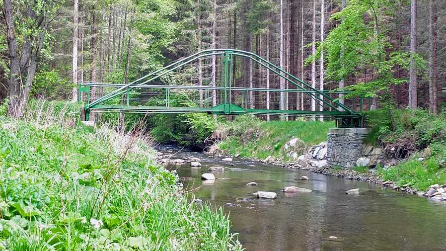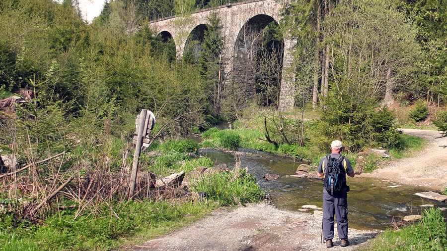 Steg über die Große Krems ..... kurz vor dem Zusammenfluss der Großen mit der Kleinen Krems an den Wotansfelsen (11) vorbei wandern.