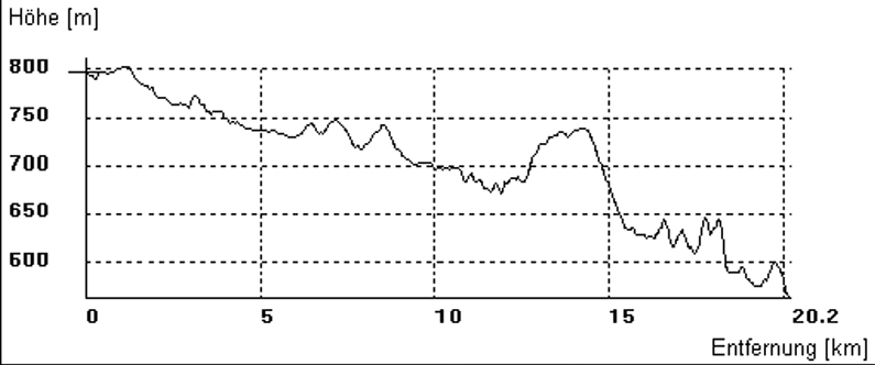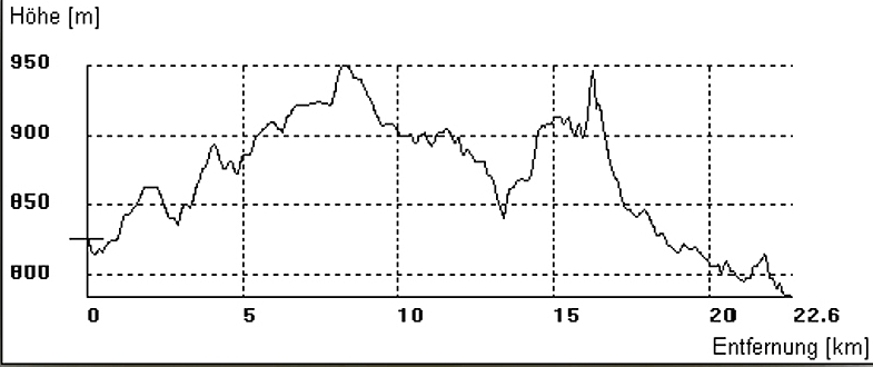 Bannholzmühle steigt der Weg auf etwa 820 m Höhe an, um danach wieder hinunter