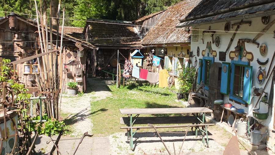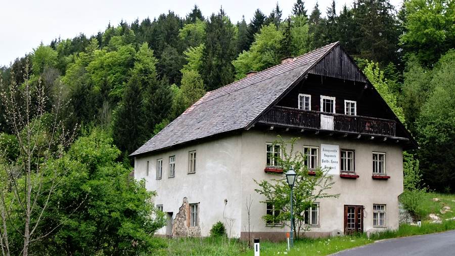 Nun führt der Kremstalweg wieder hinunter ins Tal der Großen Krems, die wir beim Brauhaus erreichen. Im ehemaligen Gesindehaus ist ein „Heimatmuseum“ angesiedelt, eine private Sammlung von alten bäuerlichen Gerätschaften, altertümlichen Haushaltsgeräten und Werkzeugen zu sehen