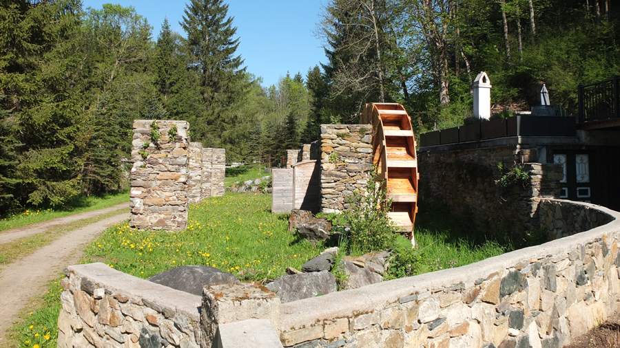 deren neues Mühlrad noch auf die Zuleitung von Wasser wartet.