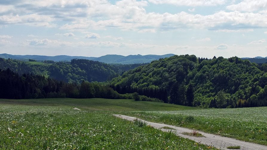 Jetzt wendet sich der Weg wieder nach Südwest um bei Primassen am weitläufigen Quellgebiet der Kleinen Krems vorbei zu führen.