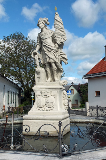 2,650.000.— zum Verkauf angeboten. Der Dorfbrunnen aus dem 18. Jahrhundert wird von der Statue des heiligen Florian überragt.