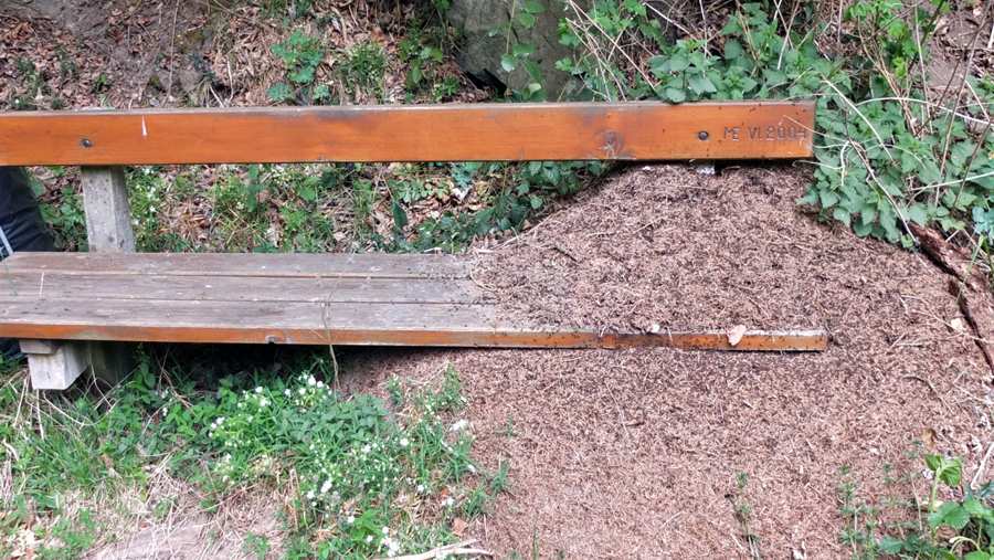 Ameisenhaufen belegt ein Drittel der Bank. Zum Glück gibt es dort noch