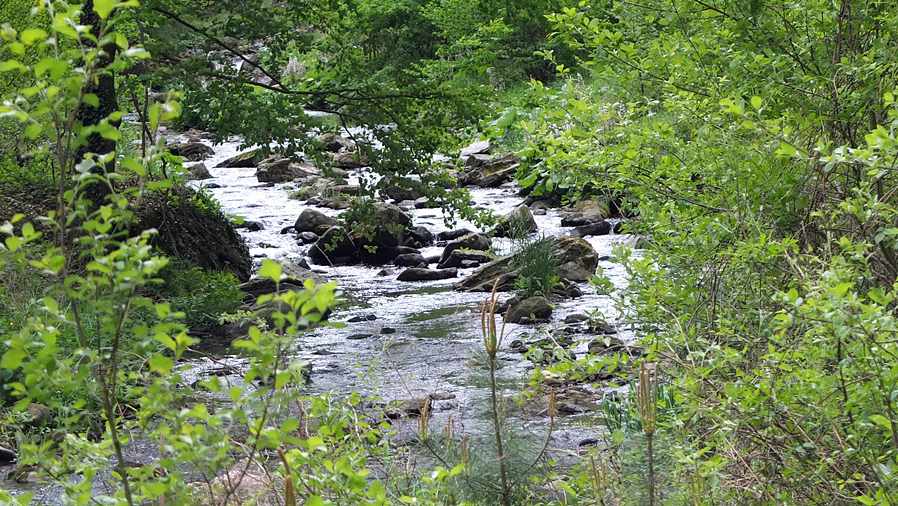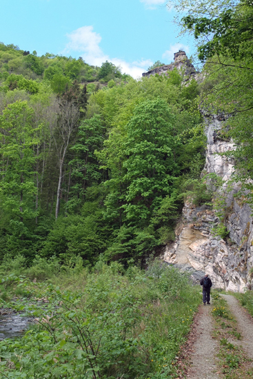 Das Tal wird jetzt immer schmäler und seine Hänge immer steiler, tief hat sich der Fluss in den felsigen Untergrund eingeschnitten.